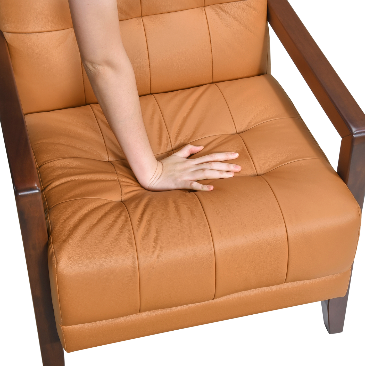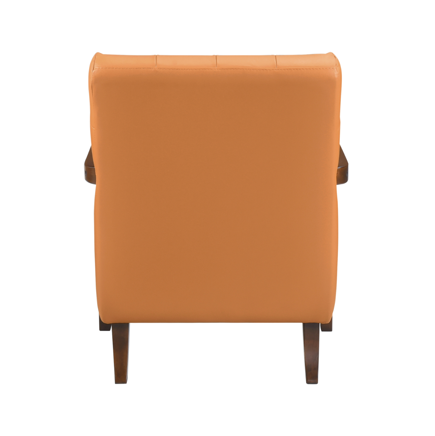 Accent Chair - Orange Top Grain Leather - Solid Wood Frame Walnut Finish