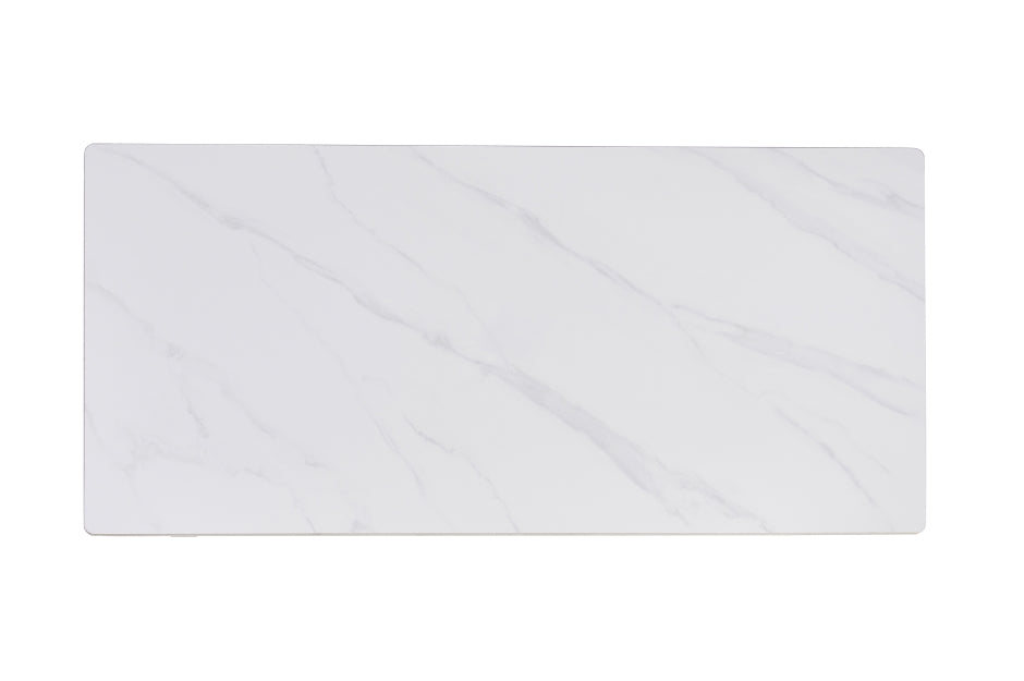 The perfect marriage of elegance and durability collides in the best way with the Jolie Collection. The stylish coffee and end table boasts a sintered stone top, showcasing the timeless appearance of gorgeous white marble while providing exceptional hardiness thanks to a durable non-porous surface that is resistant to scratches, stains, and extreme temperatures. The tabletop stands proudly atop angled metal legs with a matte black powder coating, offering an industrial edge that is oh-so-chic for your contemporary home. Thoughtfully crafted to embody a casual but en vogue aesthetic, the Jolie’s enduring construction and exquisite countenance will make your living room a spot to cherish.