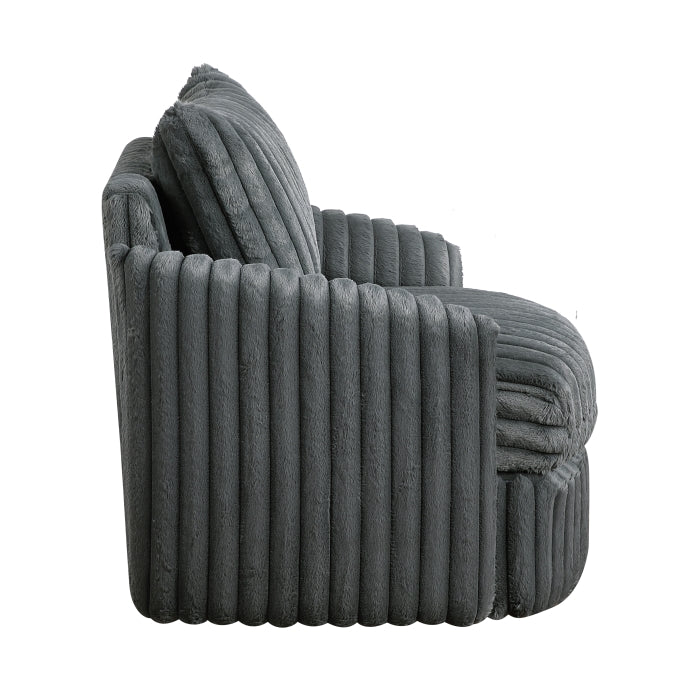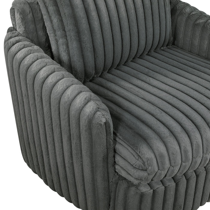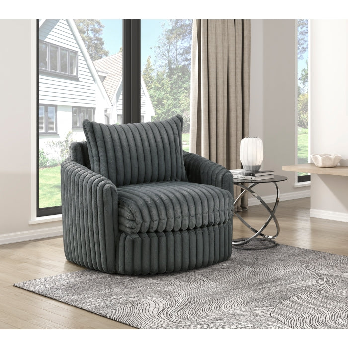 Elevate your home with this luxuriously soft 360° swivel accent chair, designed for modern elegance and ultimate comfort. Featuring a sumptuous channel-tufted upholstery, this chair delivers a bold yet inviting look that seamlessly blends into contemporary, modern, and glam interiors. The smooth 360-degree swivel base allows for effortless movement, making it perfect for lounging, reading, or socializing. Crafted with plush cushioning and a generously sized back pillow, this chair offers superior support and relaxation while adding a statement-making touch to any living room, bedroom, or home office.