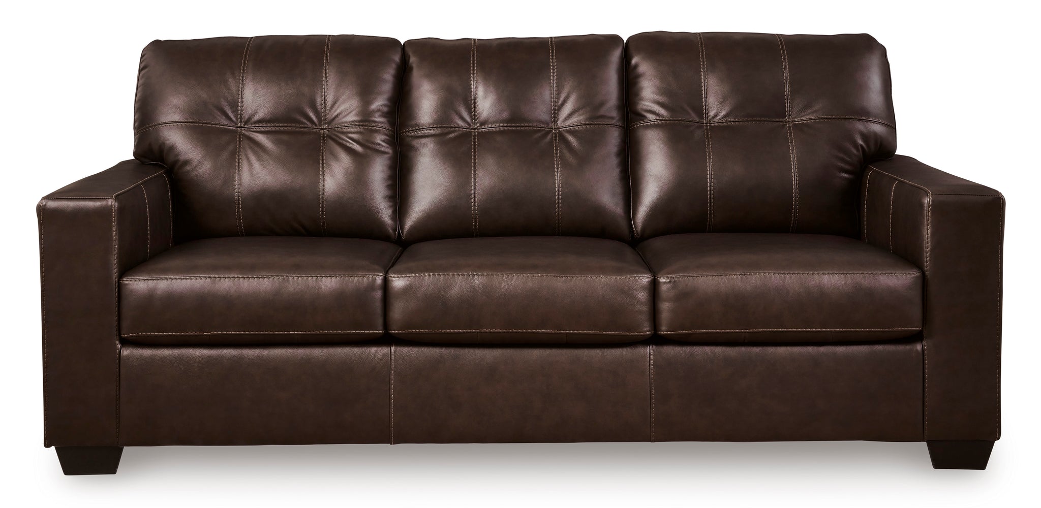 Whether your inspiration is contemporary or classic, this sofa's good looks and affordable luxury are hard to deny. Its clean-lined silhouette and skillfully matched leather and faux leather upholstery offer a transitional sensibility that's right at home in your home. And the ample cushions with tufted details invite you to relax in comfort.
