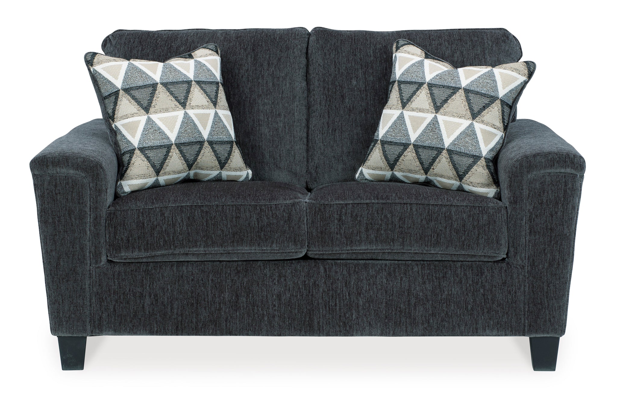 If you’re looking for a smokin’ hot look priced to entice, you’re sure to find this space-conscious, budget-conscious loveseat beautifully fits the bill. Covered in a smoke gray chenille upholstery loaded with plush texture, this less-is-more contemporary loveseat is dressed to impress with angled side profiling and track armrests wrapped with a layer of pillowy softness for that little something extra. Crisp and clean, the 2-over-2 cushion styling adds up to one sensational look.