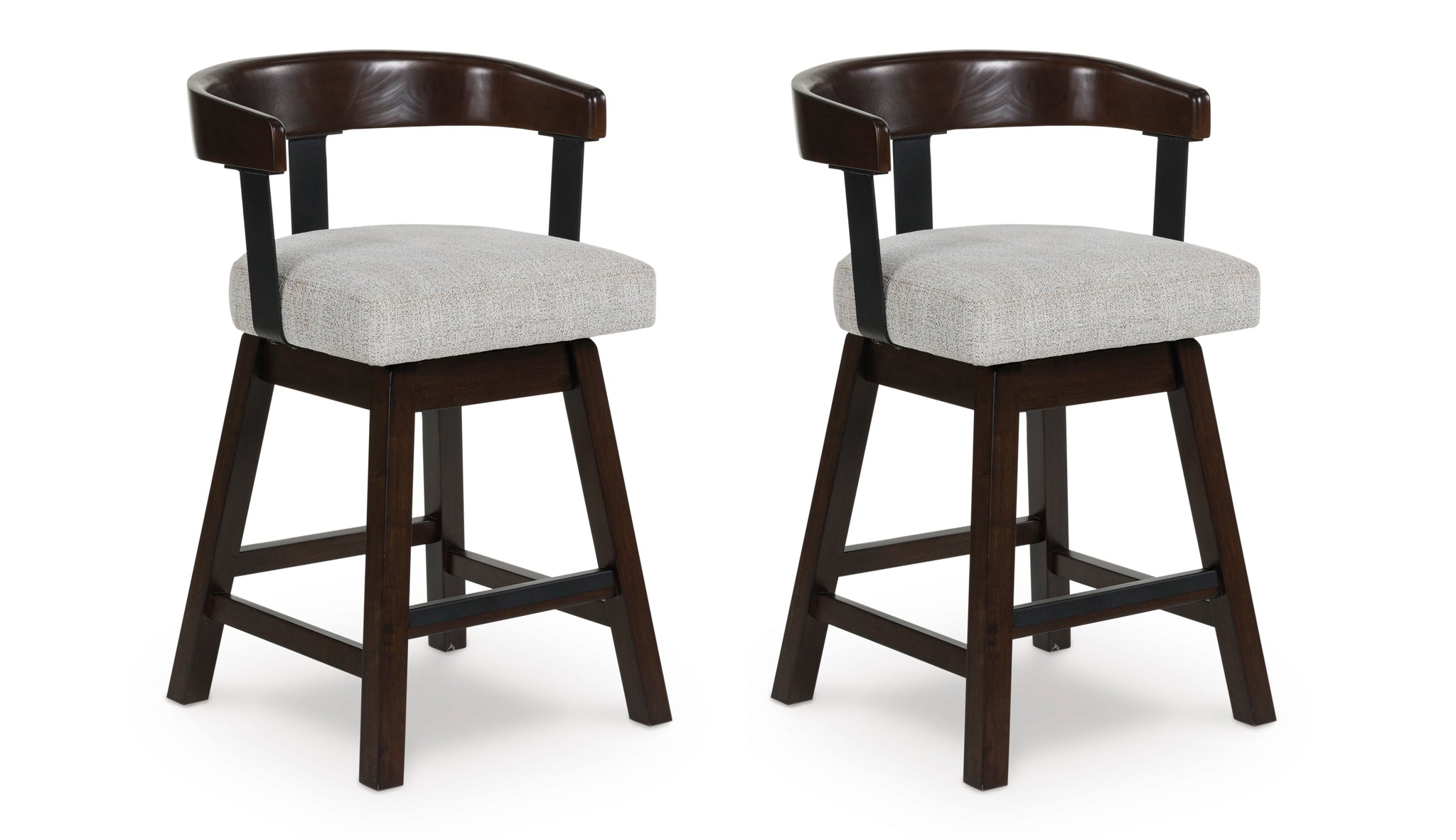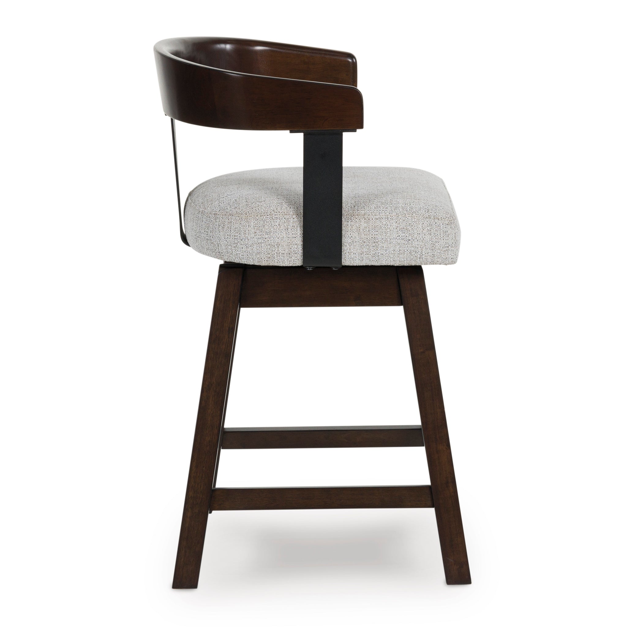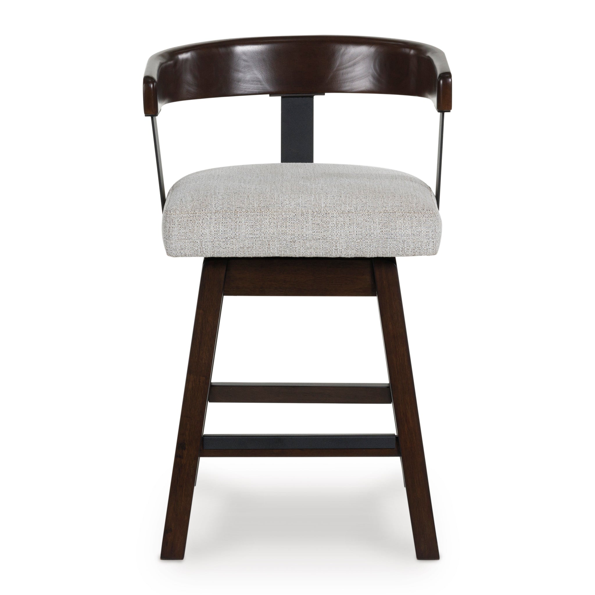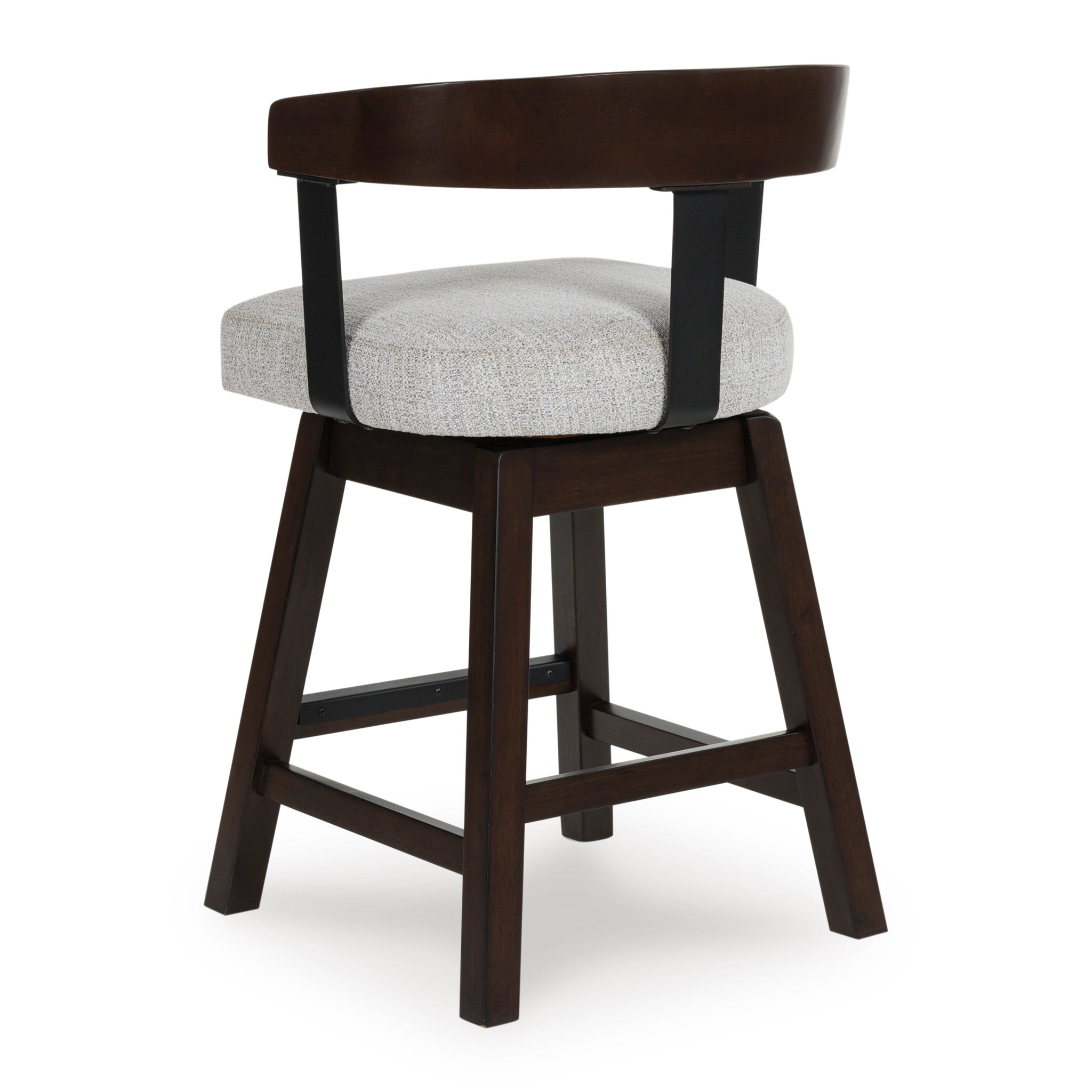 Modern sophistication, beautifully served. This swivel counter height stool raises the bar with a cool, contoured back design with a comfortably cushioned seat. Dark and rich, the monochromatic finish enhances its sleek profile. A seamless 360-degree swivel feature offers functional appeal.