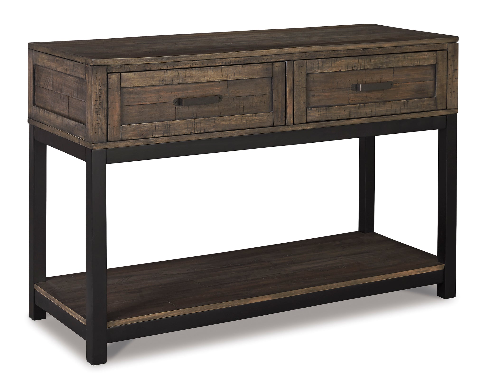 Combining a two-tone finish with a gently distressed texture produces one very distinctive sofa table. Whether your style is modern farmhouse or urban industrial, the Johurst sofa table is the perfect accent for your rustic retreat.