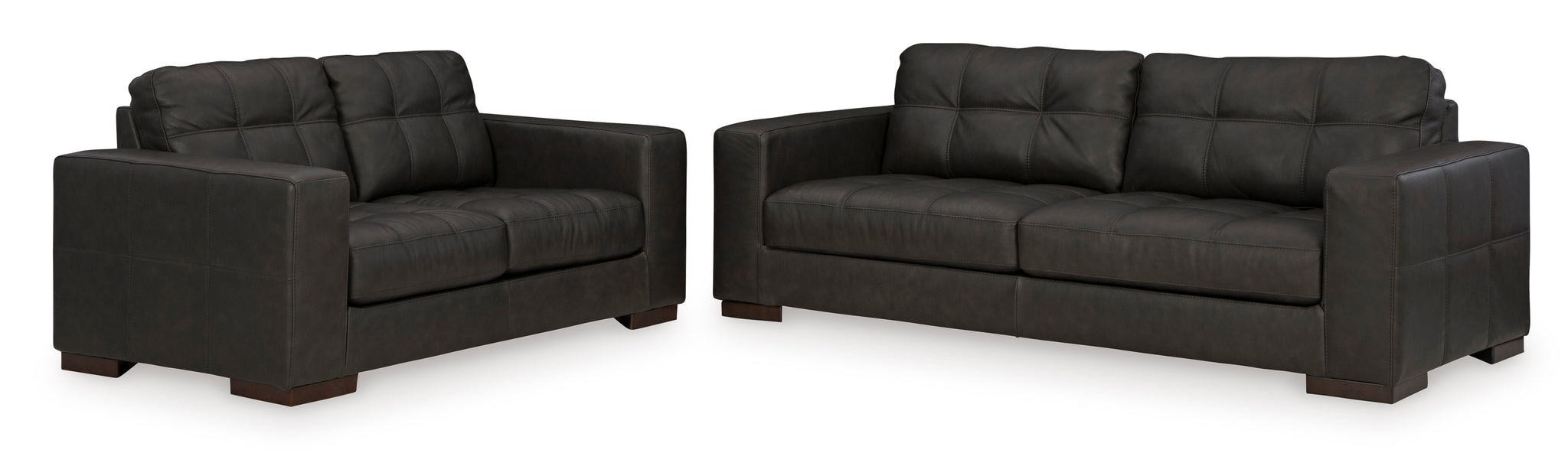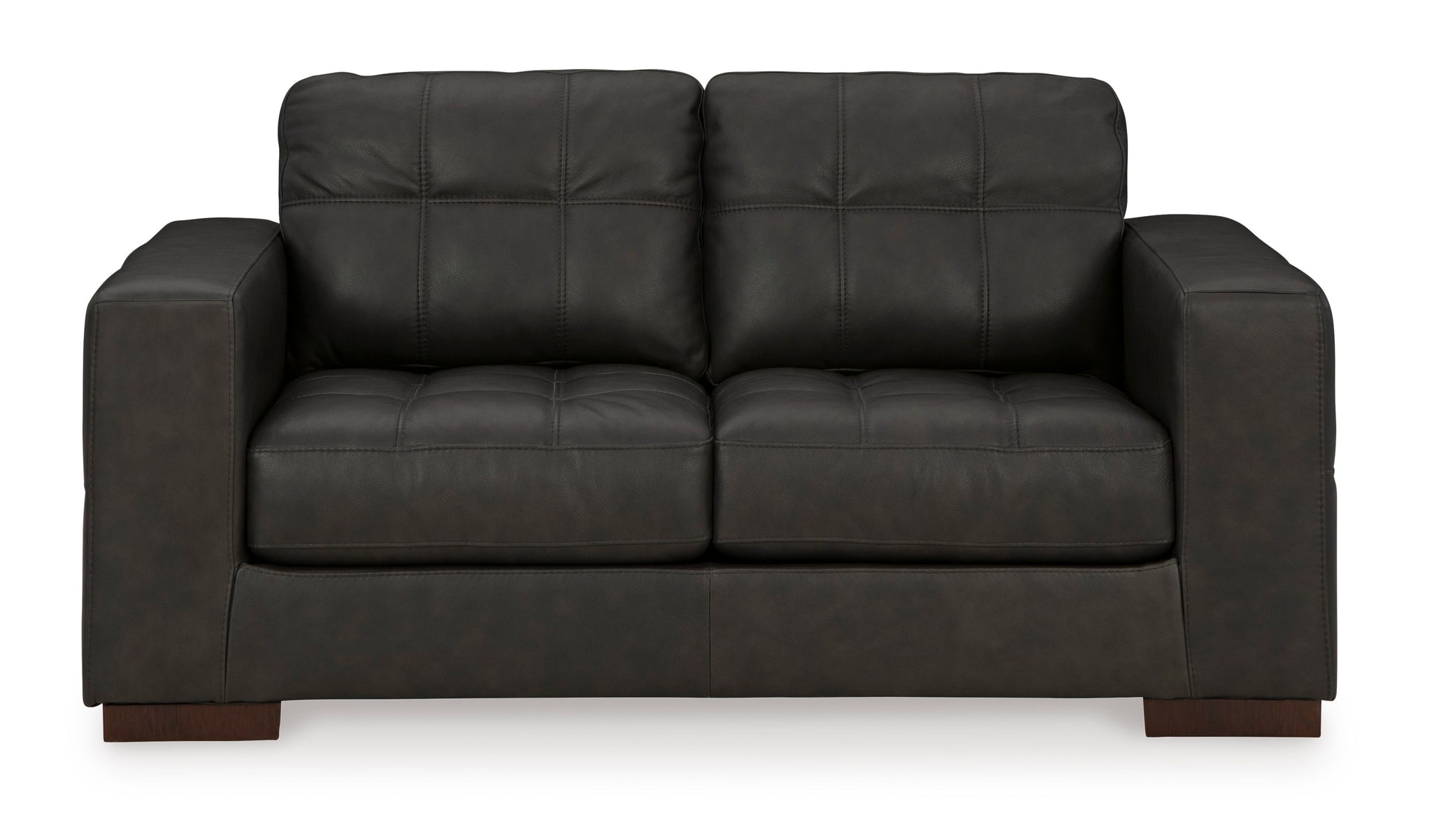 Casual and contemporary, this loveseat suits those with a keen eye for everyday luxury. Its expertly matched leather and faux leather upholstery is filled with depth and dimension, incorporating an inviting sense of masculine character. With tufting details and a linear silhouette solidifying its chill vibe, all that’s left to do is sit back and relax.