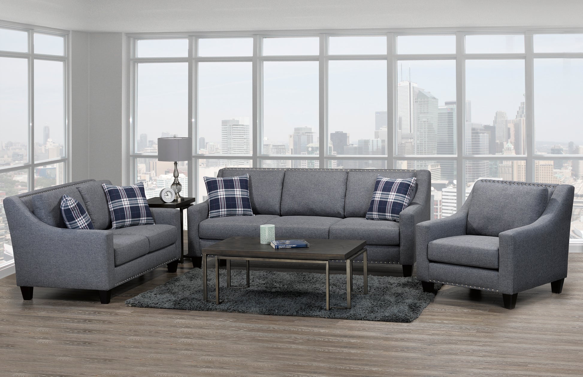 The Rosemary Sofa Deep Seating Collection is beautifully hand crafted in Canada with pride. The modern arms are padded for extra comfort. The back and seat cushions are machine filled with high density foam and insulating fibres that allow the materials to remain at the optimal seating level required. Choose from soft, medium, or hard foam seating. Extra firm seating is also available for those with back pain that require hard seating. The back and seat cushion are beautifully crafted with an accent nail trim design. This sofa collection also features optional solid wood legs or chrome legs. This sofa, love seat, and chair can be customized in any colour. We have over 40 leather options and 1000's of fabrics available. This set is proudly handmade in Canada. Please contact us or visit the showroom for more details and to build your own custom sofa.